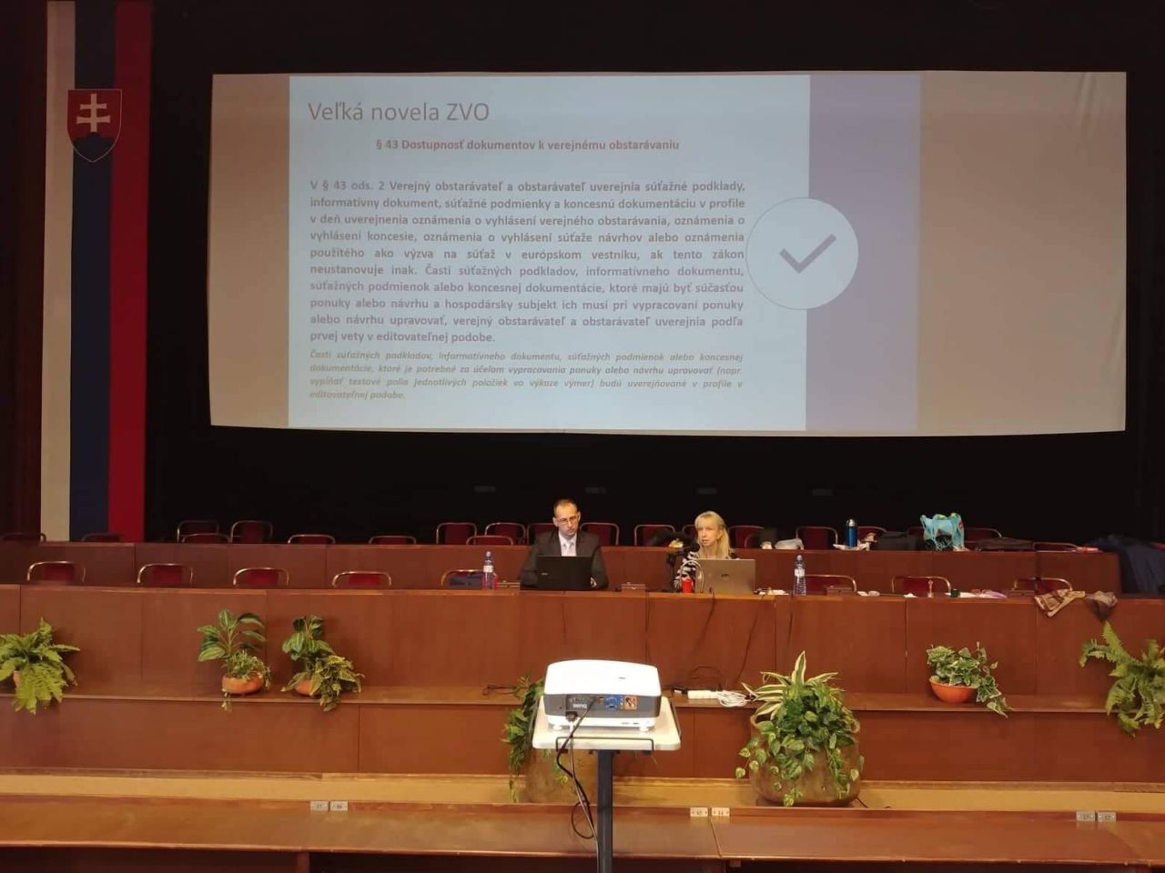 Nosnou témou bola veľká novela Zákona č. 343/2015 Z. z. o verejnom obstarávaní, ktorá nadobudla účinnosť 1. januára 2019. Prednáška bola koncipovaná tak, aby bolo zrejmé, v ktorých častiach sa zákon mení a aký dopad majú zmeny na verejných obstarávateľov.