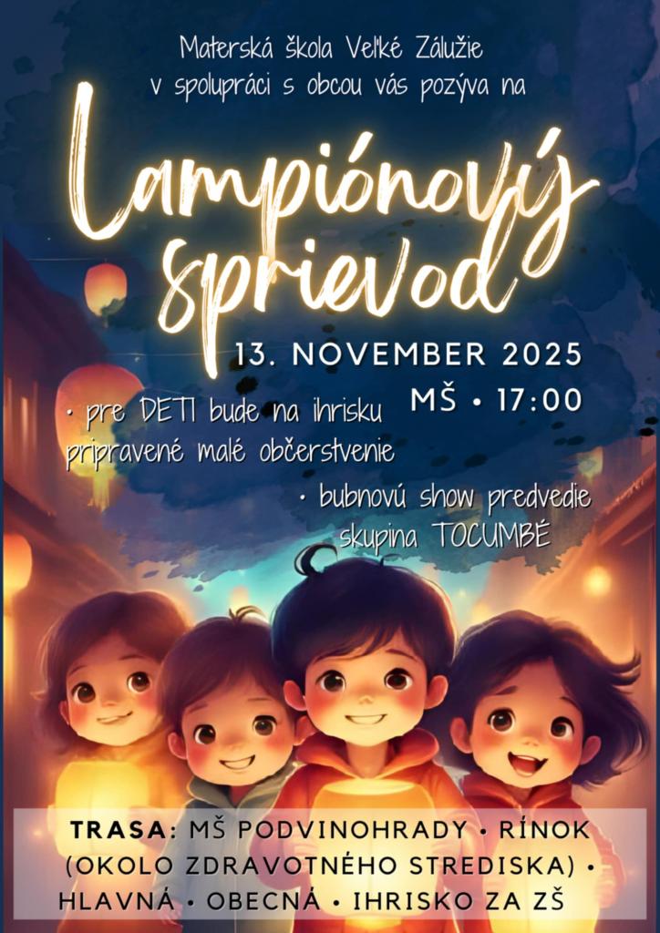 Sprievod pôjde ulicami – MŠ PODVINOHRADY – RÍNOK (okolo zdravotnéhostrediska) – HLAVNÁ – OBECNÁ – IHRISKO za ZŠ, kde bude pripravené občerstvenie a bubnová show TOCUMBÉ.
